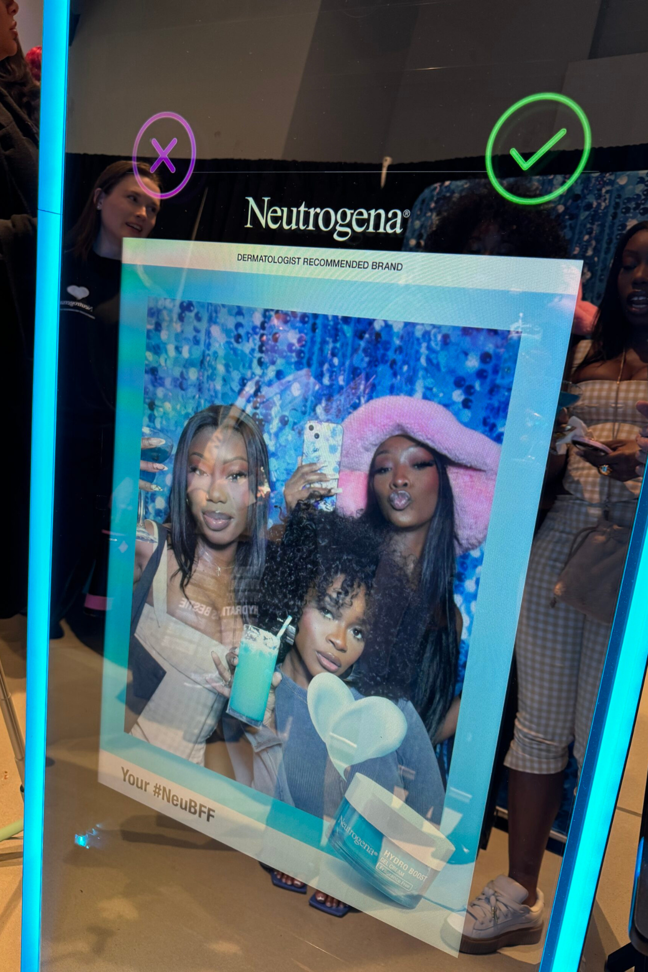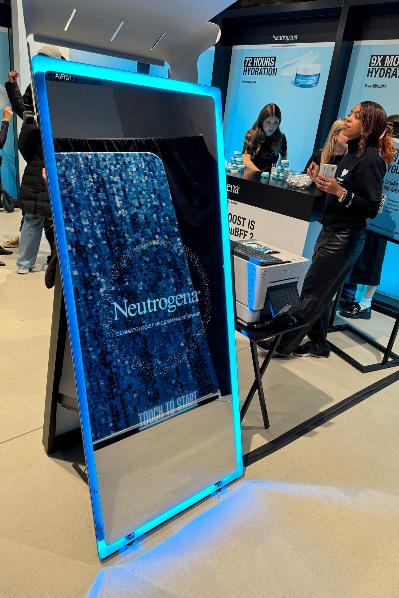 Over two packed days, guests experienced live product demonstrations before stepping into our fully branded Mirror Air photo booth, custom-designed to feel like a seamless extension of the Neutrogena brand.